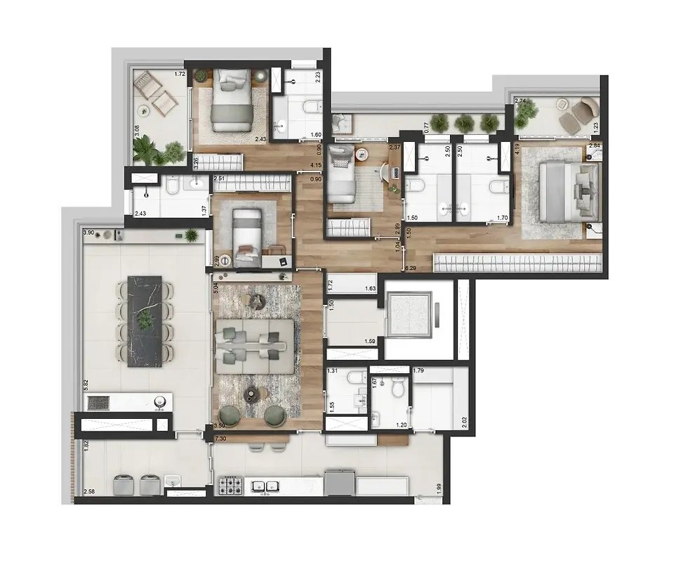 com plantas de 178m², 144m²,112m² e 151m² com até 4 suítes e 3 vagas de garagem,